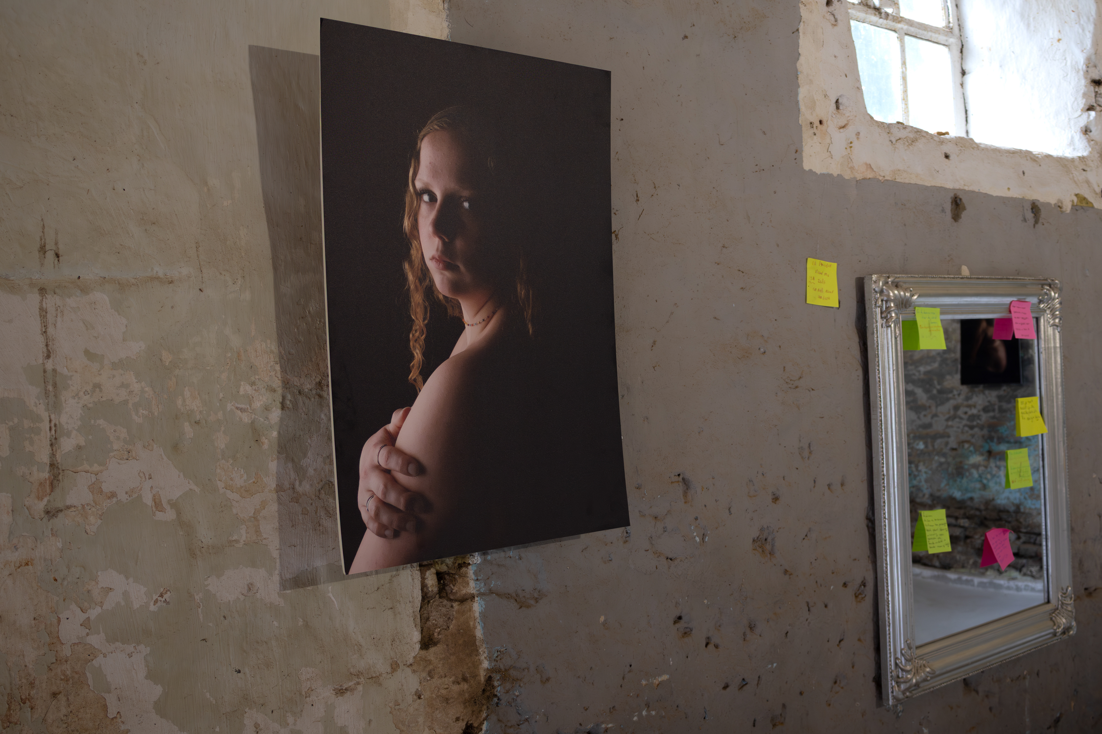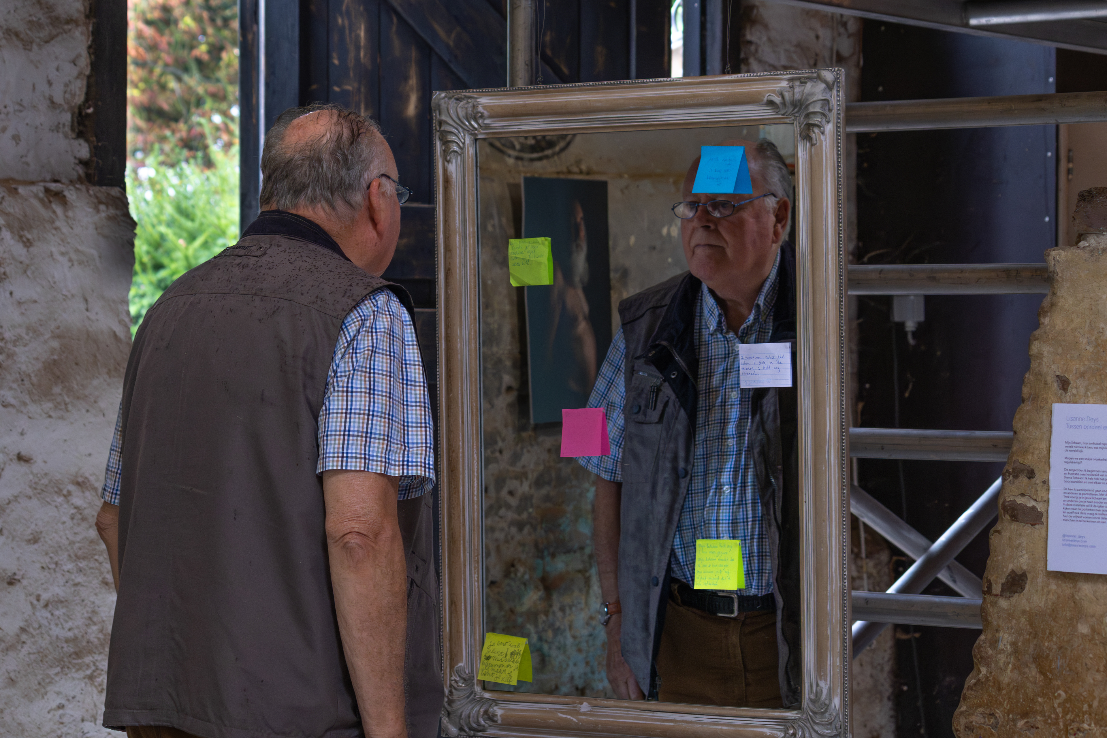 The final work is a mixed media installation with written letters from the persons portrayed, printed photography and interactive elements.